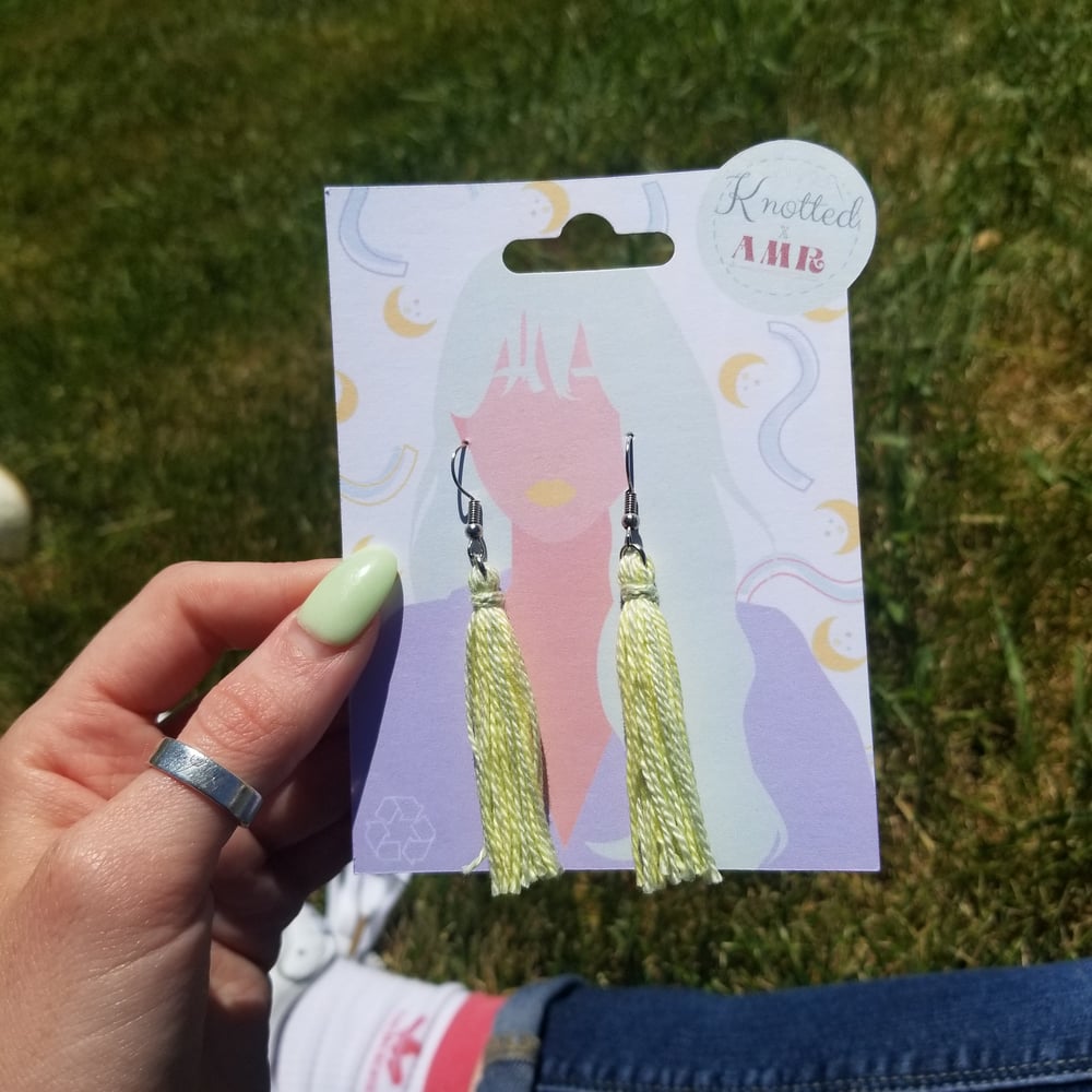 Handmade with 100% cotton and sterling silver jewelry pieces, these thoughtfully crafted earrings are a cute and simple way to add a little jazz to your everyday outfits.